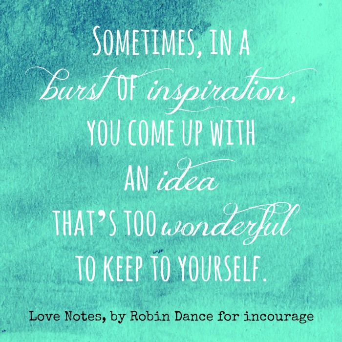 Sometimes, in a burst of inspiration, you come up with an idea that’s too wonderful to keep to yourself. For almost a year, I’ve been saving something special for (in)courage: a beautiful way to encourage your children or friends who are working for a summer...
