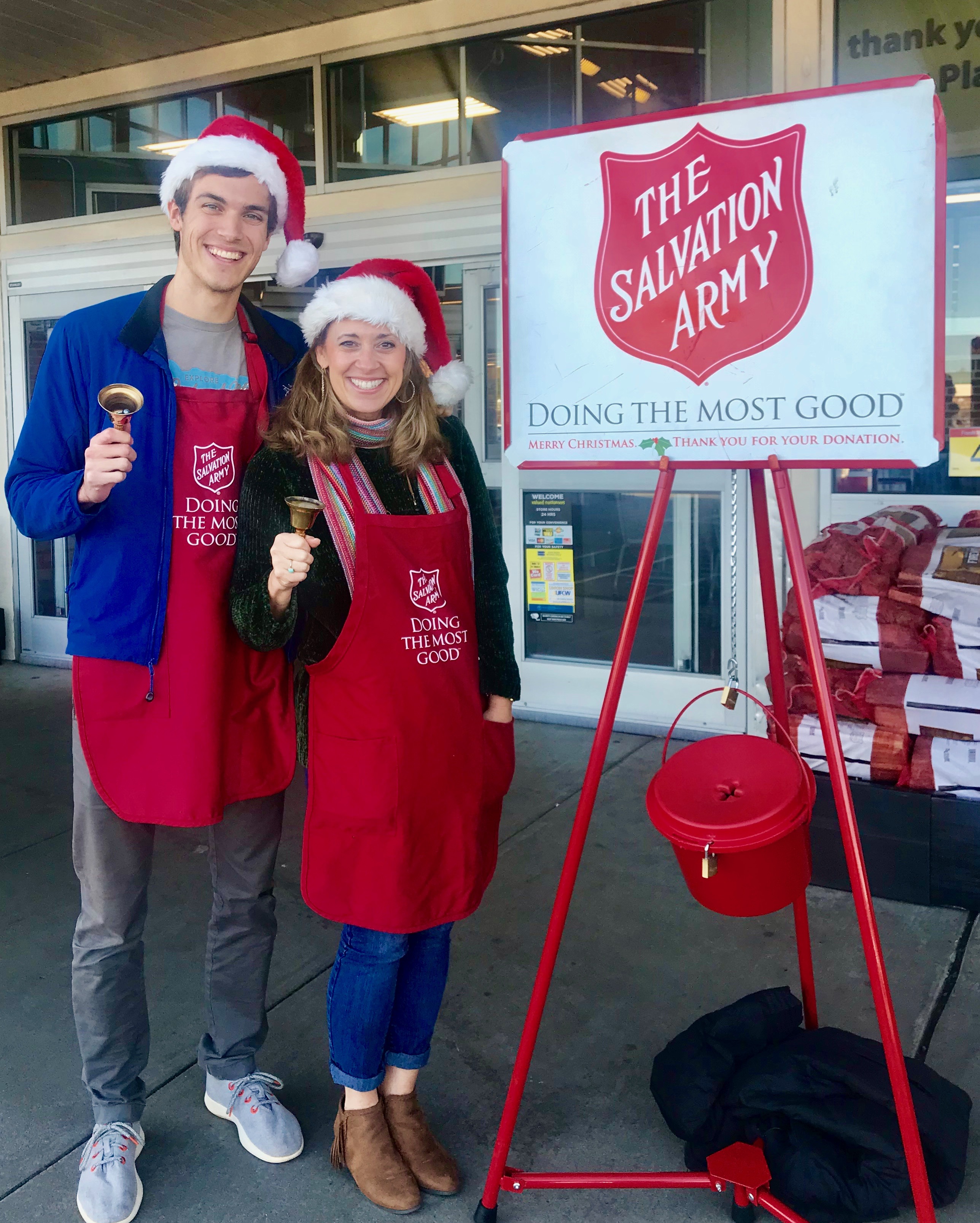 Ringing bells for the Salvation Army’s Red Kettle fundraiser.